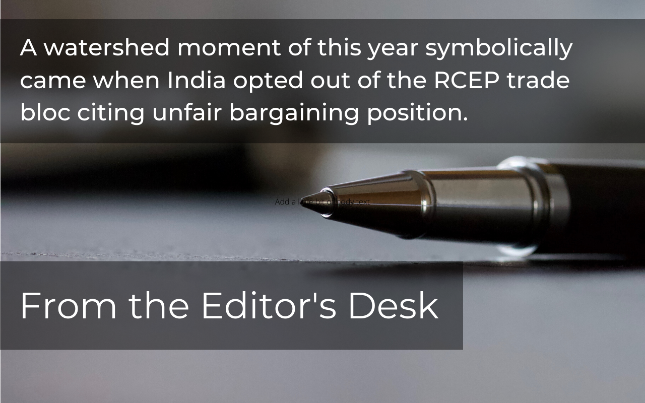 A watershed moment of this year symbolically came when India opted out of the RCEP trade bloc citing unfair bargaining position (though unsaid but referring to – vis a vis China) as the reason. If India would have signed the RCEP in line with the other 15 signatory nations, there was an imminent danger of over a million jobs withering away. This populist step showing our protectionist mindset further took us away from globalization.