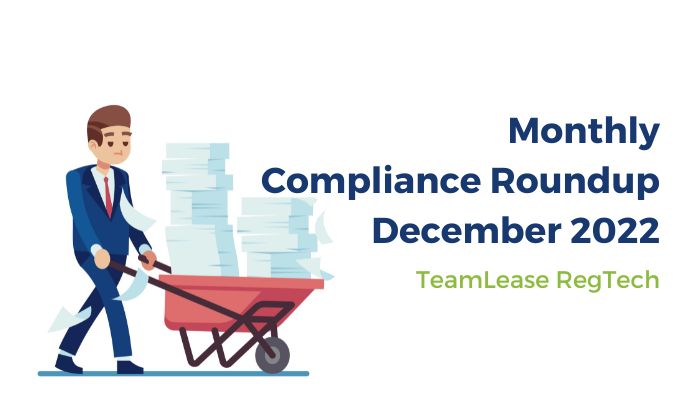 Ignorance of the law excuses no one. Given the fluid nature of India’s regulatory landscape, employers must make all efforts to stay updated on the latest compliance changes. This is why we bring to you the Monthly Compliance Roundup from our knowledge partner ‘TeamLease RegTech’, a brief summary of the major regulatory updates in a month. It groups together the most significant updates and provides a short explainer of each update to provide better insight into its potential implications. The Monthly Compliance Roundup is intended to provide a unique bird’s eye view of the latest and notable changes in India’s compliance universe. This document can be a great value addition not only for those actively involved in compliance management but also for anyone looking to better understand the country’s evolving regulatory ecosystem.