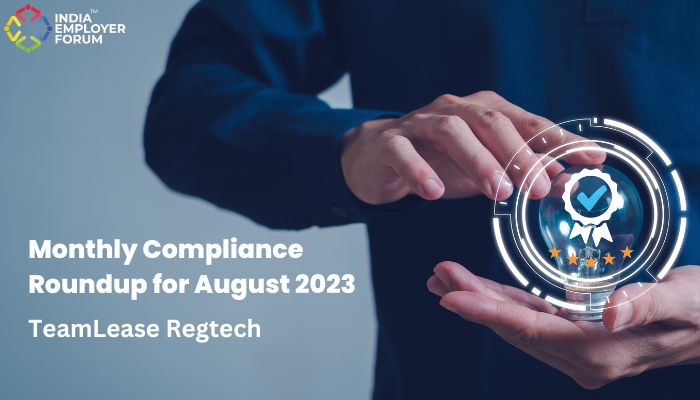 Ignorance of the law excuses no one. Given the fluid nature of India’s regulatory landscape, employers must make all efforts to stay updated on the latest compliance changes. This is why we bring to you the Monthly Compliance Roundup from our knowledge partner ‘TeamLease RegTech’, a brief summary of the major regulatory updates in a month. It groups together the most significant updates and provides a short explainer of each update to provide better insight into its potential implications. The Monthly Compliance Roundup is intended to provide a unique bird’s eye view of the latest and notable changes in India’s compliance universe. This document can be a great value addition for those actively involved in compliance management and anyone looking to better understand the country’s evolving regulatory ecosystem.