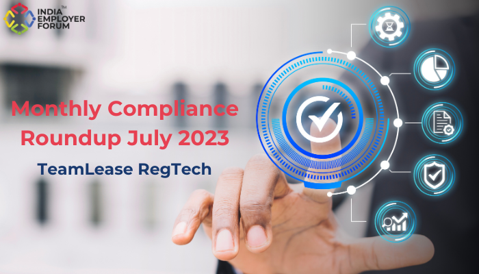 Ignorance of the law excuses no one. Given the fluid nature of India’s regulatory landscape, employers must make all efforts to stay updated on the latest compliance changes. This is why we bring to you the Monthly Compliance Roundup from our knowledge partner ‘TeamLease RegTech’, a brief summary of the major regulatory updates in a month. It groups together the most significant updates and provides a short explainer of each update to provide better insight into its potential implications. The Monthly Compliance Roundup is intended to provide a unique bird’s eye view of the latest and notable changes in India’s compliance universe. This document can be a great value addition for those actively involved in compliance management and anyone looking to better understand the country’s evolving regulatory ecosystem.