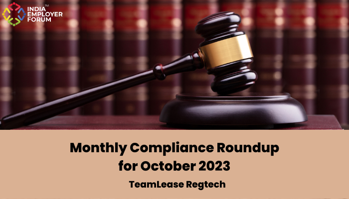 Ignorance of the law excuses no one. Given the fluid nature of India’s regulatory landscape, employers must make all efforts to stay updated on the latest compliance changes. This is why we bring to you the Monthly Compliance Roundup from our knowledge partner ‘TeamLease RegTech’, a brief summary of the major regulatory updates in a month. It groups together the most significant updates and provides a short explainer of each update to provide better insight into its potential implications. The Monthly Compliance Roundup is intended to provide a unique bird’s eye view of the latest and notable changes in India’s compliance universe. This document can be a great value addition for those actively involved in compliance management and anyone looking to better understand the country’s evolving regulatory ecosystem.