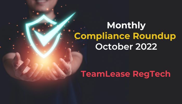 Ignorance of the law excuses no one. Given the fluid nature of India’s regulatory landscape, employers must make all efforts to stay updated on the latest compliance changes. This is why we bring to you the Monthly Compliance Roundup from our knowledge partner ‘TeamLease RegTech’, a brief summary of the major regulatory updates in a month. It groups together the most significant updates and provides a short explainer of each update to provide better insight into its potential implications. The Monthly Compliance Roundup is intended to provide a unique bird’s eye view of the latest and notable changes in India’s compliance universe. This document can be a great value addition not only for those actively involved in compliance management but also for anyone looking to better understand the country’s evolving regulatory ecosystem.